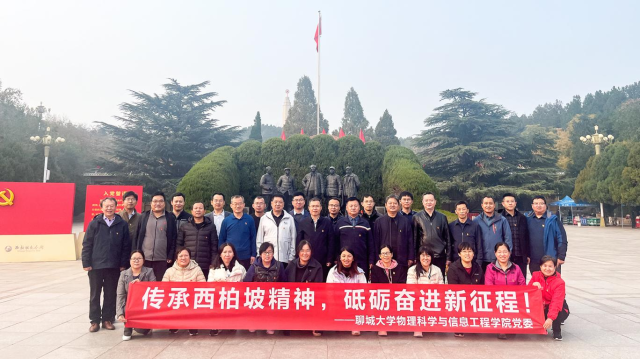 2024年11月8日至9日,物理科学与信息工程学院组织教职工党员干部赴西柏坡开展“弘扬西柏坡精神 坚定立德树人使命”主题党日活动,深刻领悟“谦虚谨慎、艰苦奋斗、实事求是、一心为民”的西柏坡精神,坚定立德树人使命。
