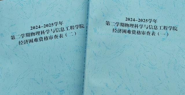 秉承教育公平与精准援助的核心理念,物理科学与信息工程学院始终将资助管理工作视为学院工作的重要环节,力求每一笔资助都能精准送达最需要的学生手中。在审核受助学生的家庭经济状况时,学院采取了细致入微且全面覆盖的策略:一方面,工作人员不仅依赖于现有资料,更对所有已认定的家庭经济困难学生进行了深入的资格复审,核实了全部306名家庭经济困难学生的信息,实现100%全覆盖,要求他们统一填写《聊城大学2025年春季学期家庭经济困难学生资格复审表》,以此确保资助机制的高效与公正。另一方面,学院对所抽取学生的填报信息进行严格核实,并上报学校进行二次复审,复审结果返回后,由学院指定专人进行细致归档,按照学年、学期、专业及班级等多维度进行分类保存,为后续的资助工作提供了精准的数据支持与决策依据,助力资助金的合理分配及资助政策的持续优化。